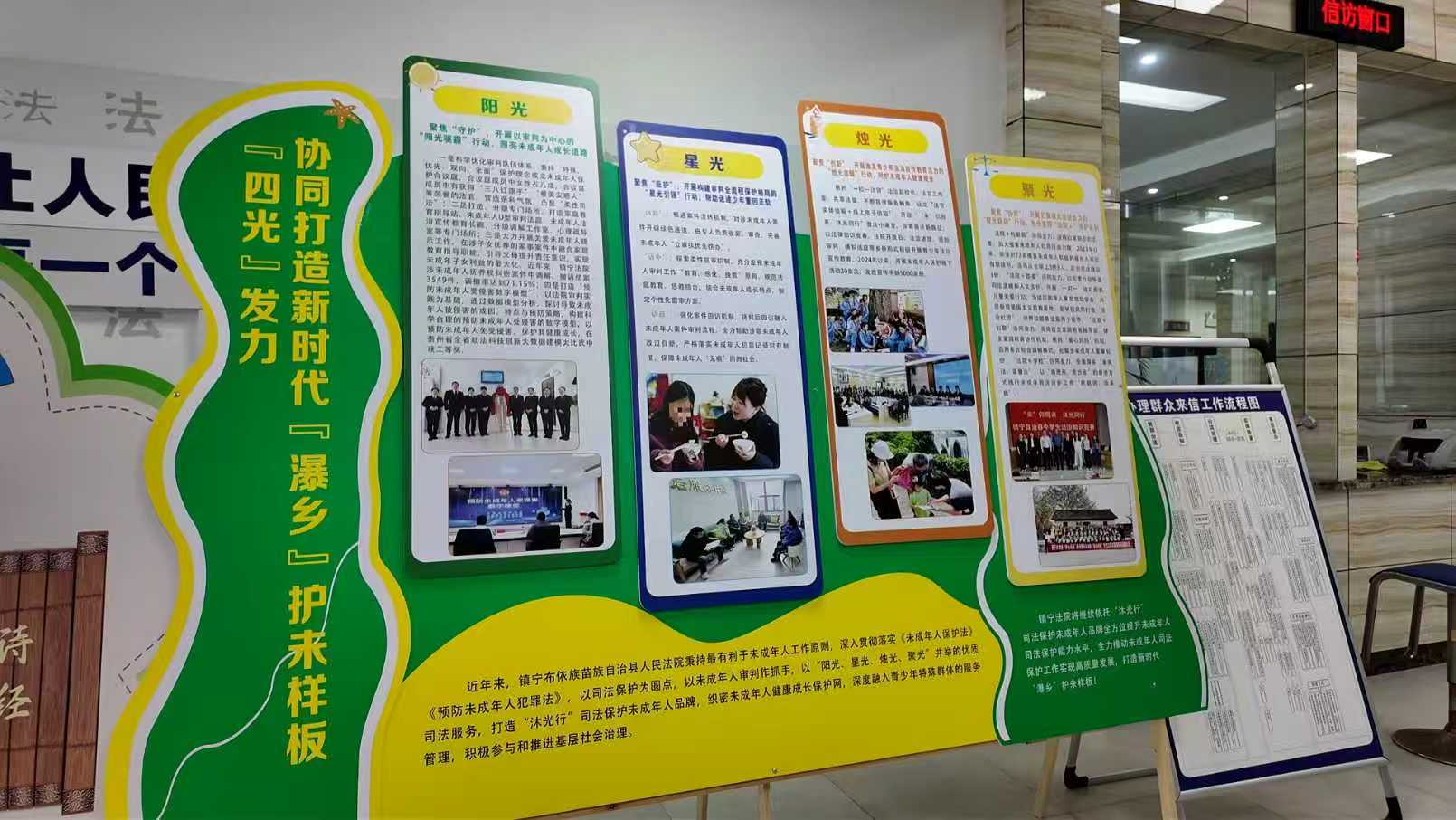 在品牌塑造上,镇宁法院以“阳光、星光、烛光、聚光”四光协同体系为核心,内涵不断具象化延伸。“阳光”体系优化审判队伍,成立未成年人保护合议庭,涉未成年人抚养权纠纷案件调撤率达70.69%;“星光”体系以“沐光星憩”为载体,组建“法官妈妈”一对一帮扶团队,助力迷途未成年人回归;“烛光”体系推出定制化法治教育、“法治生日会”、法治副校长双轨信箱、在线普法视频、法律知识竞赛等多元活动,实现精准普法;“聚光”体系则以品牌为纽带凝聚社会共识,推动保护工作从“单打独斗”变为“众人拾柴”。