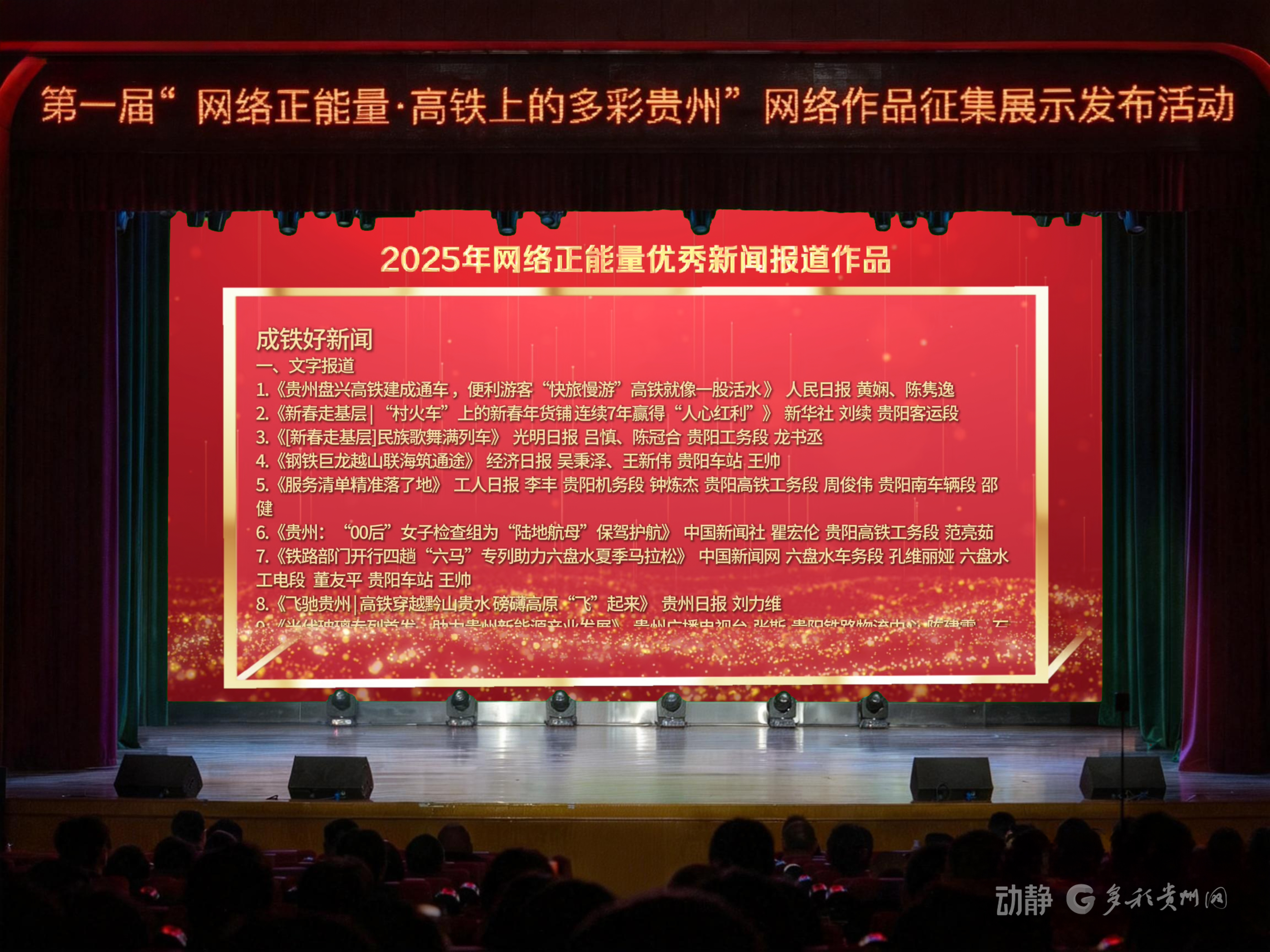 今天(1月29日),贵州省委网信办与中国铁路成都局集团有限公司联合举办的首届“网络正能量·高铁上的多彩贵州”网络作品征集展示发布活动在贵阳举办。本次活动集中发布了2025年度铁路题材网络正能量优秀作品与平台账号,为西南铁路高质量发展凝聚起强劲的网络力量。