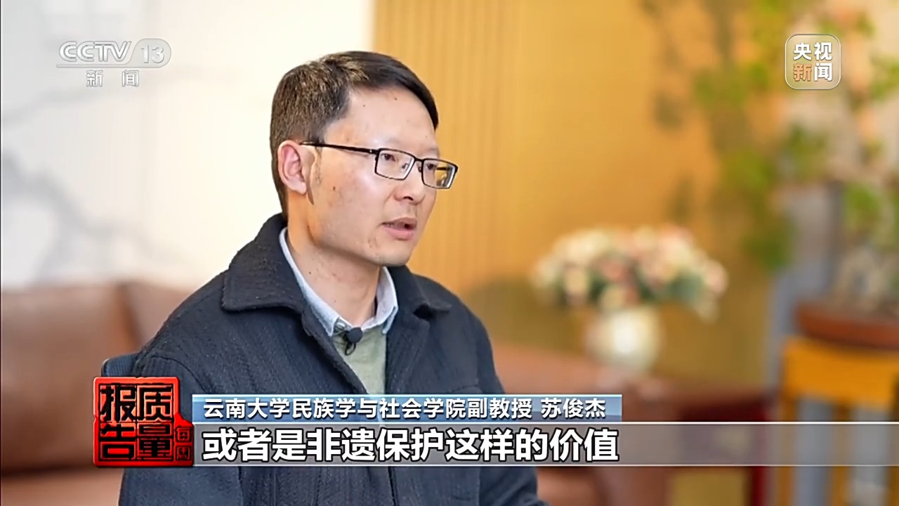 云南大学民族学与社会学院副教授 苏俊杰:首先我们要考虑到非遗或者非遗保护传承指的是什么?首先要去承认或者保护的是非遗传承人这个群体,他们数十年,甚至于一辈子,这种对于手艺对于技艺的执着传承,考量的是他的技艺的精湛程度,他的师承关系、文化表现,还有文化的认同等等,而不说仅仅只是一个市场的价值。那么现在很多的非遗的这些有代办,或者说一些不良的名头滥用或者包装等,他们考虑的不是非遗传承人在背后辛辛苦苦这样的保护传承、带徒等,而是考虑获取短暂的市场利益,这样的话,这种大量冒用、滥用非遗标签名头带来的这些市场行为,就挤占了原来那些辛辛苦苦数十年如一日在做非遗传承的这些真正的非遗传承人他们的生存空间。