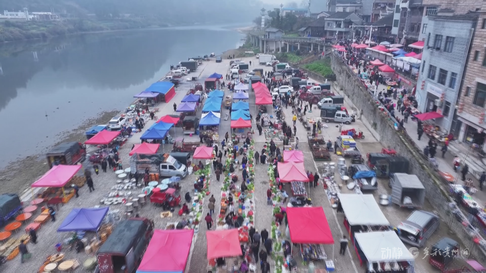 春节的脚步越来越近,台江县各地纷纷开启“赶年集”模式,这座清水江畔的千年商埠,至今延续着每周赶集的传统。南来北往的人潮涌动,绣样、苗布等手工艺品琳琅满目,绣娘们热情介绍,处处洋溢着浓郁的年味。