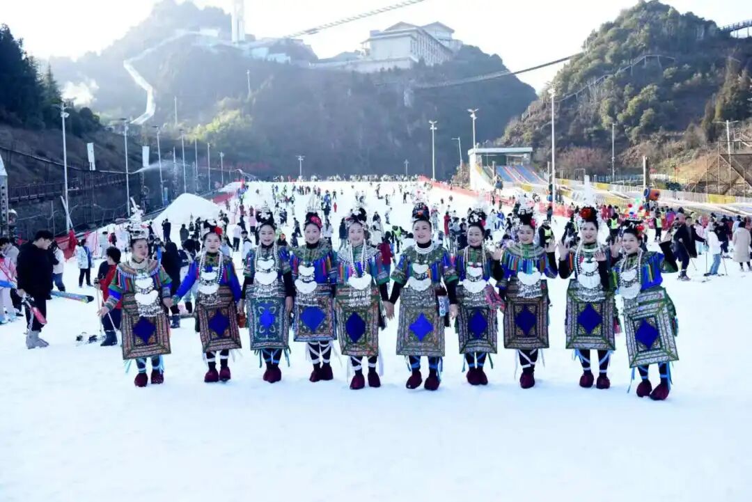 近年来,黔东南“村”字号文旅品牌持续“出圈”,“村超”“村BA”“村T”“村歌”“村舞”“村羽”等IP深受群众与游客喜爱。梅花山国际滑雪场作为西南地区重要的冰雪旅游目的地,其雪景资源与多民族文化具有天然契合度。此次“非遗+冰雪”的创意呈现,不仅展现出传统文化与现代旅游融合的活力,也为跨区域文旅协作搭建了新平台。