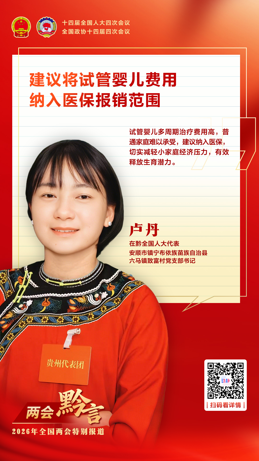 两会黔言丨在黔全国人大代表卢丹:建议将试管婴儿费用纳入医保报销范围