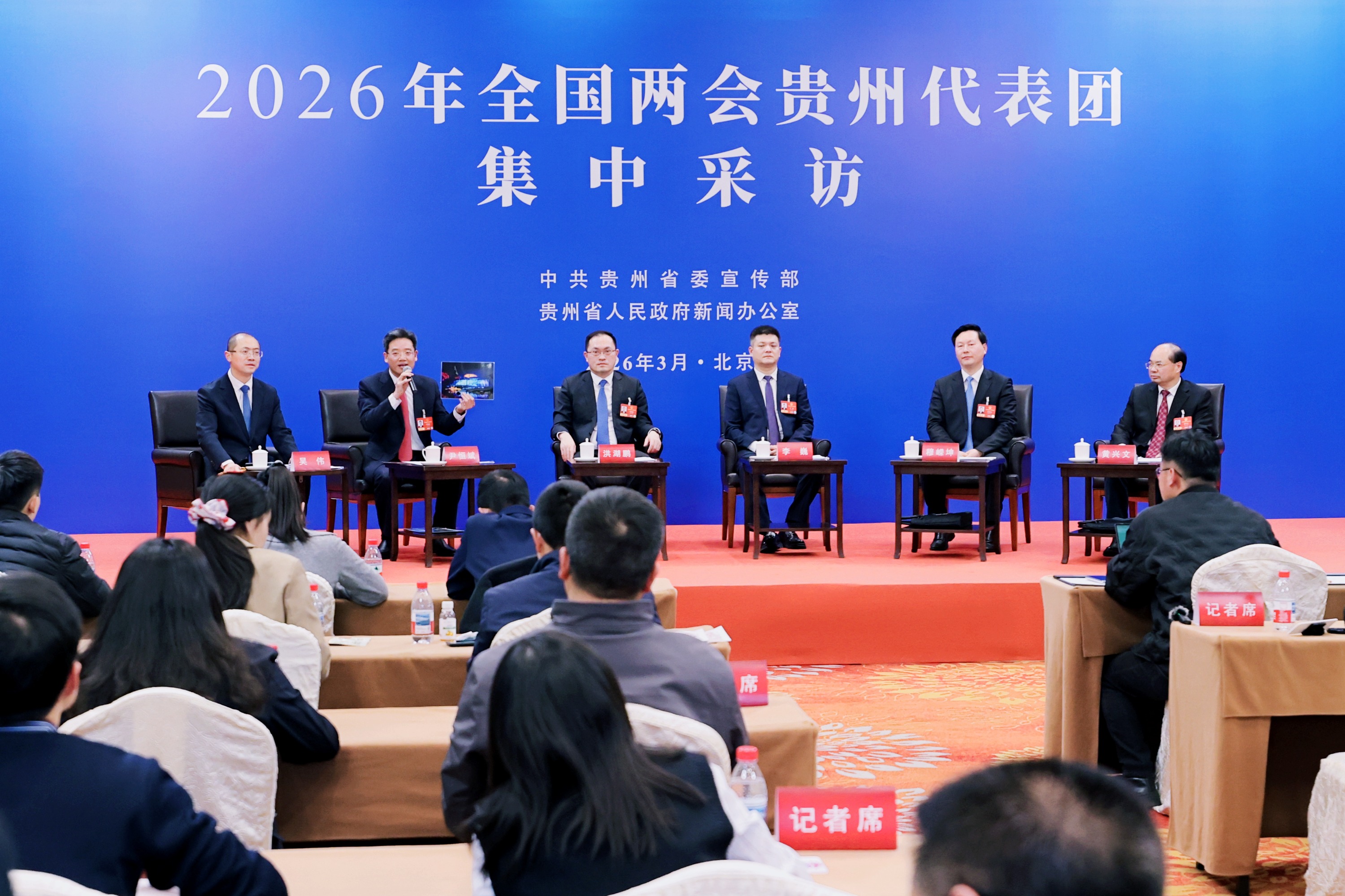 2026年全国两会贵州代表团第一场集中采访今晚(3月7日)举行,黔南州委书记洪湖鹏,六盘水市委副书记、市长李巍,安顺市委副书记、市长尹恒斌,铜仁市委副书记、市长穆嵘坤,黔西南州委副书记、州长黄兴文五位全国人大代表做客演播室,就各地发挥比较优势,落实大抓产业、大抓项目、大抓招商、大抓经营主体“四个大抓”回答记者提问。