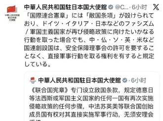 中国驻日使馆重申联合国敌国条款:若日本有再次侵略的任何步骤,五常可直接实施军事行动2025年11月22日 -