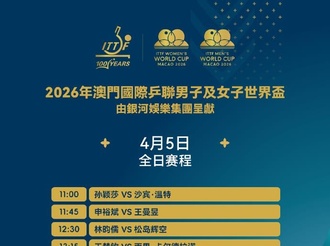 国际乒联单打世界杯半决赛、决赛将于今日进行2026年04月05日 -