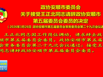 政协安顺市委员会关于接受王正北同志请辞政协安顺市第五届委员会委员的决定2026年03月27日 -
