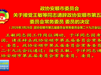 政协安顺市委员会关于接受王敏等同志请辞政协安顺市第五届委员会常务委员 委员的决定2026年03月27日 -