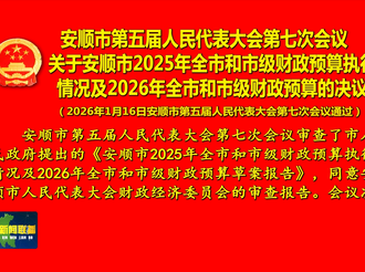 安顺市第五届人民代表大会第七次会议关于安顺市2025年全市和市级财政预算执行情况及2026年全市和市级财政预算的决议2026年01月17日 -