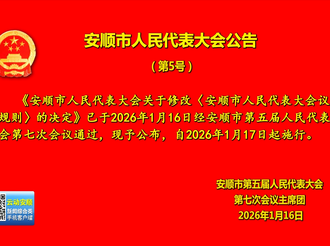 安顺市人民代表大会公告(第5号)2026年01月17日 -